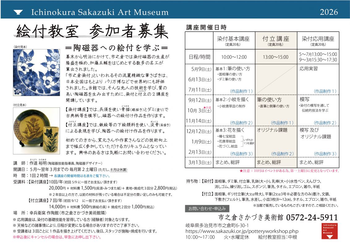 [染付講座:応用コース] 5,6,7月は13:00~15:00、9月からは15:30~17:30