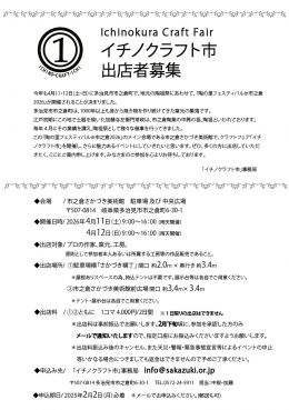 「イチノクラフト市2026春」の出店者の募集がはじまりました。ぜひ、多くの方に出店していただきたく、ここにご案内申し上げます。